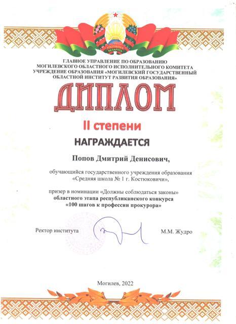 Попов Дмитрий, победитель областного этапа республиканского конкурса "100 шагов к профессии прокурора"