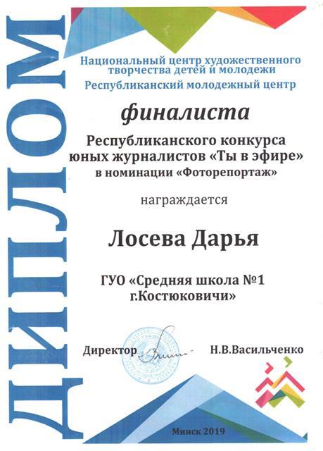 Лосева Дарья, финалист республиканского конкурса "Ты в эфире"